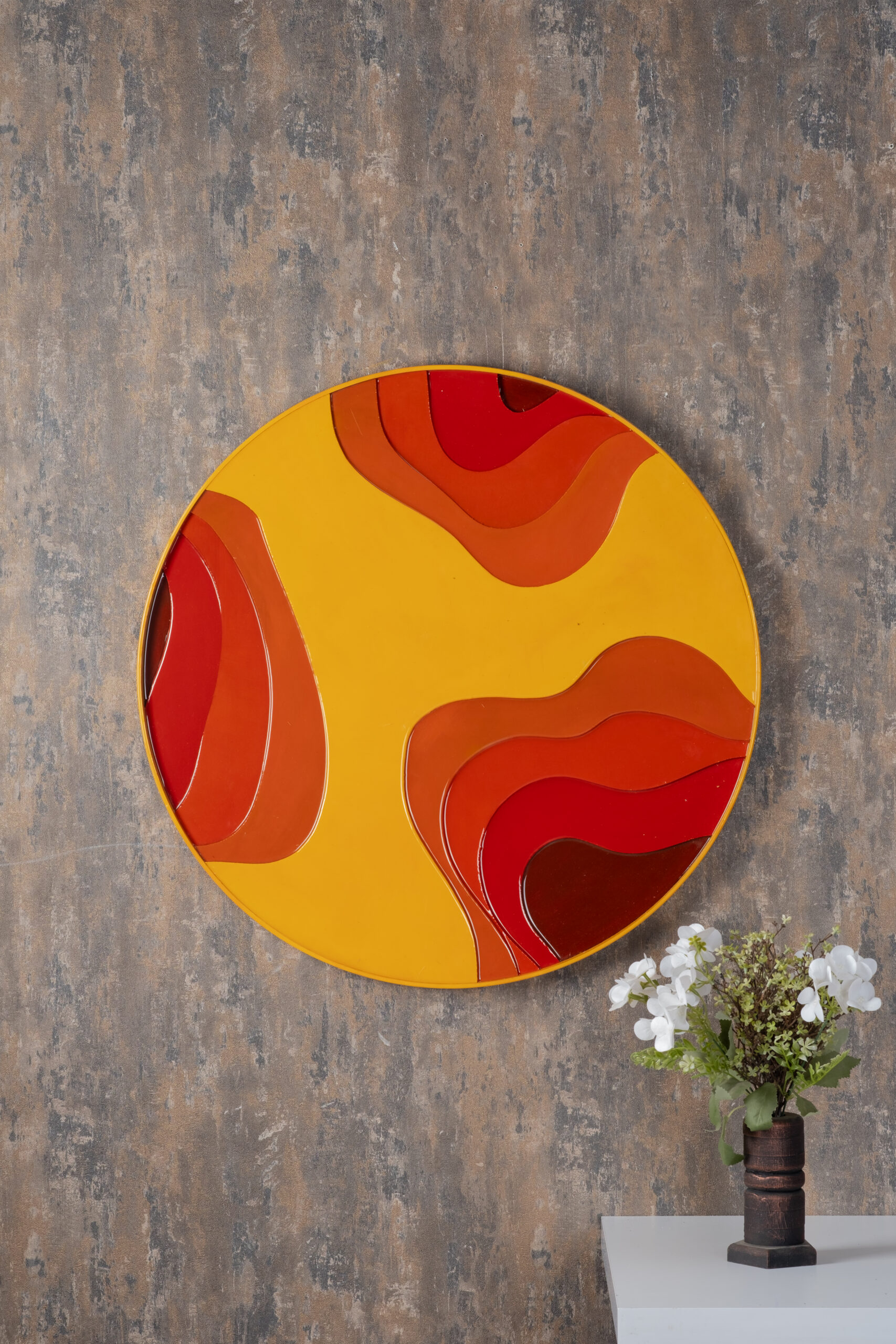 ColorFlow Abstract Plate Series, akışkan soyut desenlerin modern renk tonlarıyla birleştiği dekoratif tabak koleksiyonudur. Her bir tabak; pembe, kırmızı, mor, turuncu, mavi, yeşil ve daha birçok tonu içeren özgün renk katmanlarıyla duvarda derinlik ve hareket hissi oluşturur.