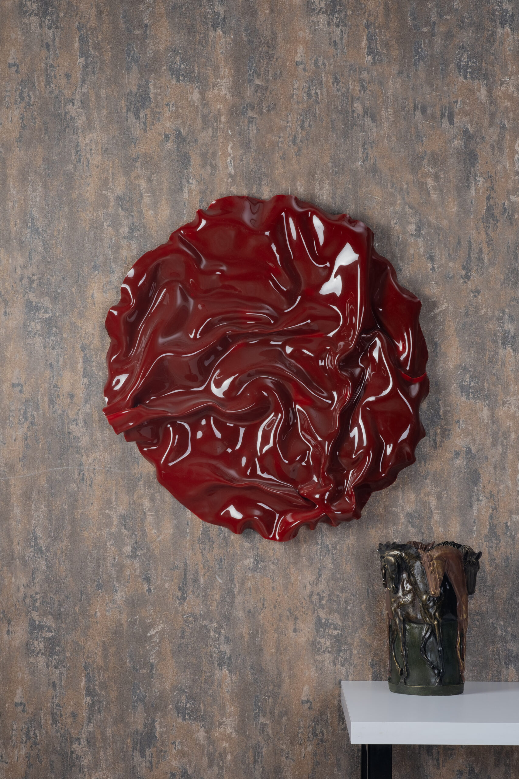 Modern sanat akımlarından ilham alınarak tasarlanan Crimson Wave Wall Sculpture, kıvrımlı formu ve parlak kırmızı yüzeyiyle bulunduğu ortamın enerjisini anında yükseltir. Akışkan dalga görünümü, statik duvar yüzeyine hareket ve derinlik kazandırırken, güçlü kırmızı tonu mekâna sofistike bir vurgu ekler.