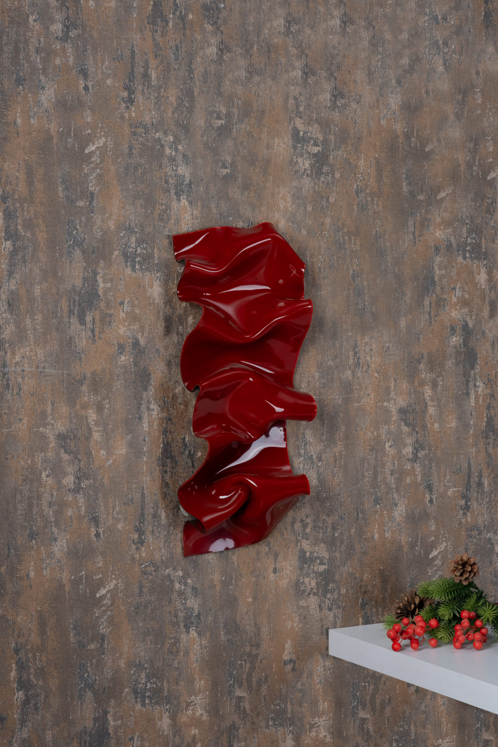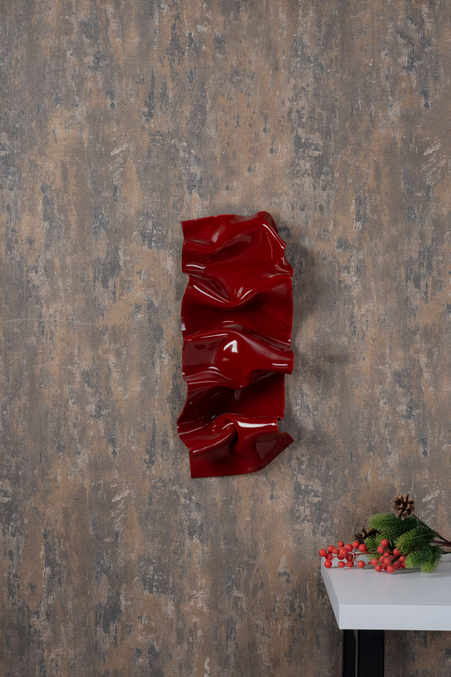Modern sanat akımlarından ilham alınarak tasarlanan Crimson Wave Wall Sculpture, kıvrımlı formu ve parlak kırmızı yüzeyiyle bulunduğu ortamın enerjisini anında yükseltir. Akışkan dalga görünümü, statik duvar yüzeyine hareket ve derinlik kazandırırken, güçlü kırmızı tonu mekâna sofistike bir vurgu ekler.