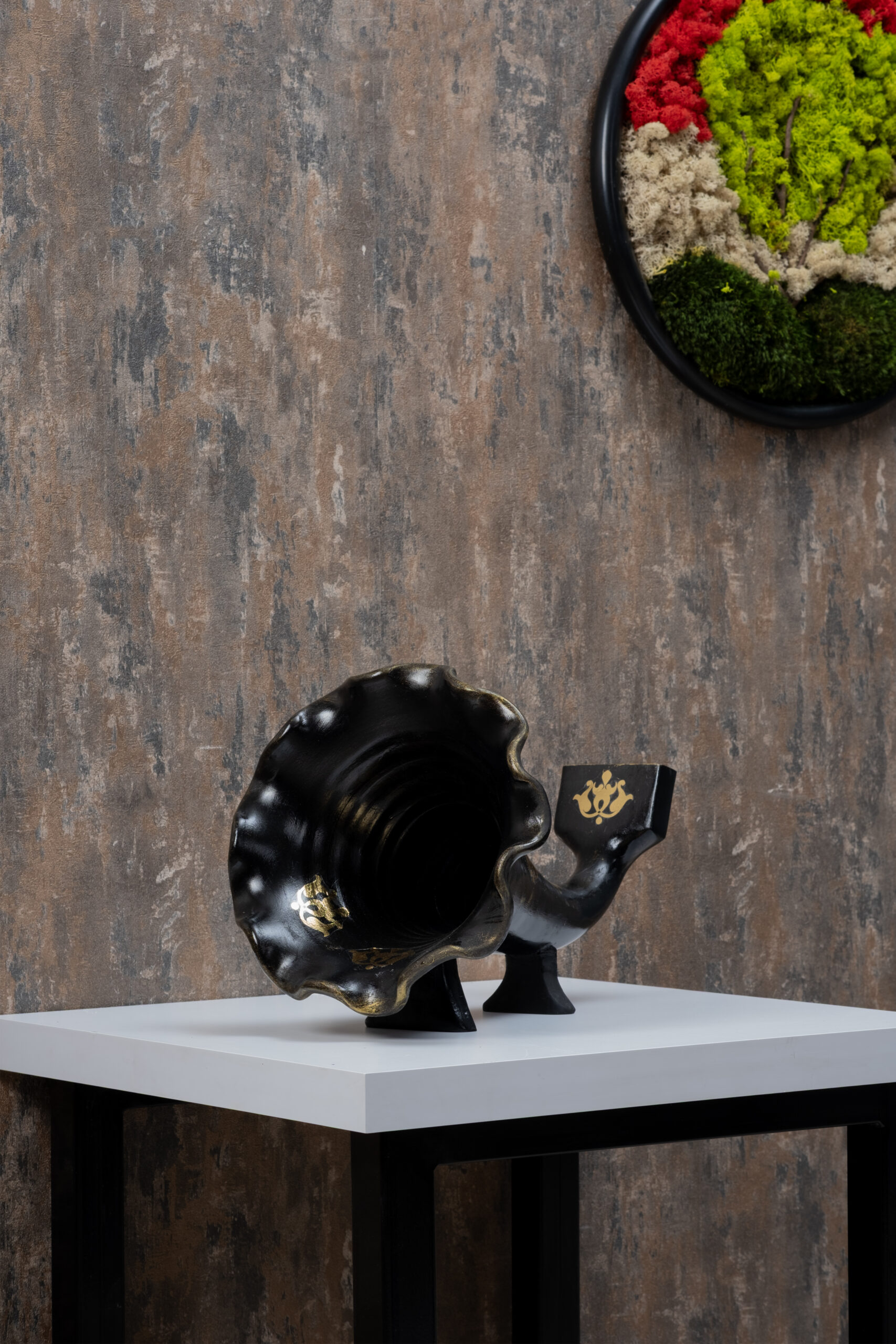 Mor gövdesi ve iç yüzeyindeki metalik gümüş dalga yapısı, sesi yönlendirerek daha yüksek ve temiz bir tını elde edilmesini sağlar. Elektrik gerektirmeden çalışan yapısı sayesinde masa, konsol, ofis ve ev ortamlarında hem dekoratif bir obje hem de fonksiyonel bir aksesuar olarak kullanılabilir.