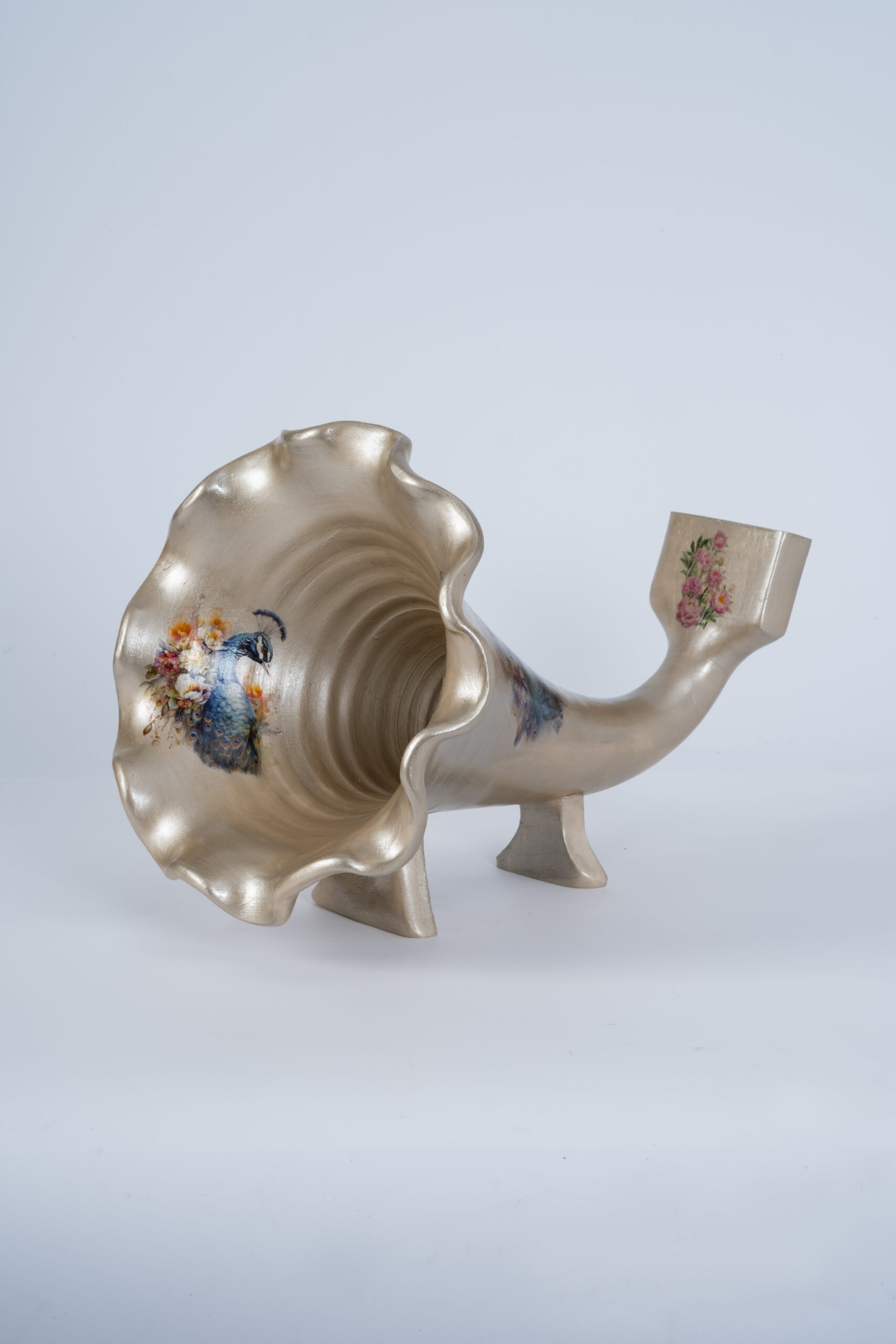 Mor gövdesi ve iç yüzeyindeki metalik gümüş dalga yapısı, sesi yönlendirerek daha yüksek ve temiz bir tını elde edilmesini sağlar. Elektrik gerektirmeden çalışan yapısı sayesinde masa, konsol, ofis ve ev ortamlarında hem dekoratif bir obje hem de fonksiyonel bir aksesuar olarak kullanılabilir.