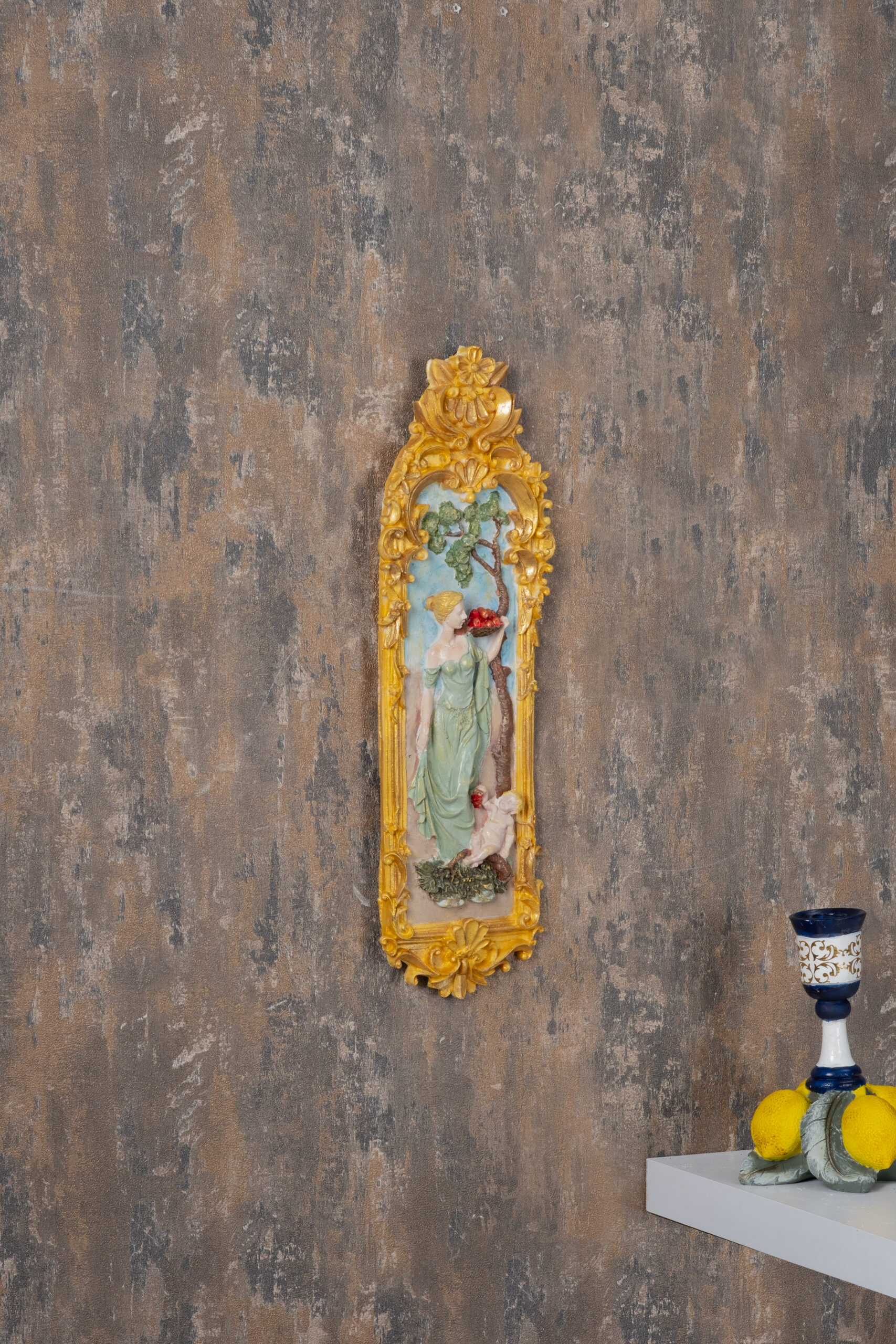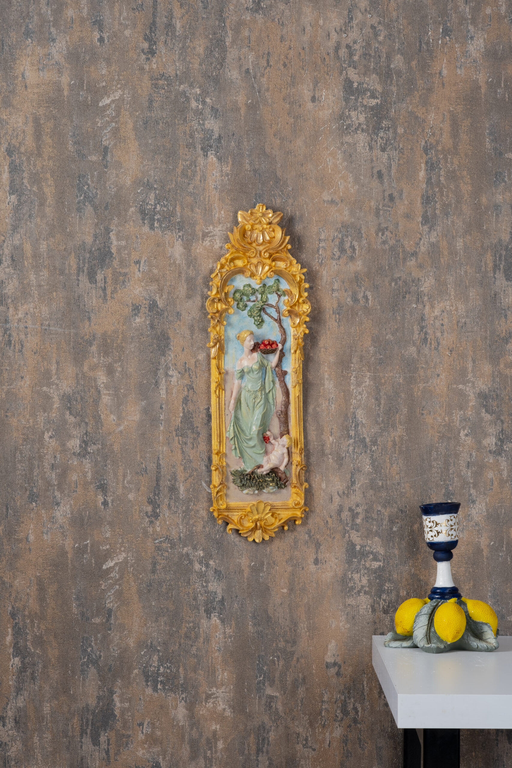 Golden Grace Relief Panel, ince işçilikle şekillendirilmiş klasik kabartma detayları ve altın varak etkisindeki çerçevesiyle duvarda zarif, aristokrat bir duruş sergiler. Mitolojik ve pastoral figürlerin yer aldığı bu sanat parçası, nostaljik bir atmosfer oluştururken aynı zamanda mekâna estetik bir derinlik kazandırır.