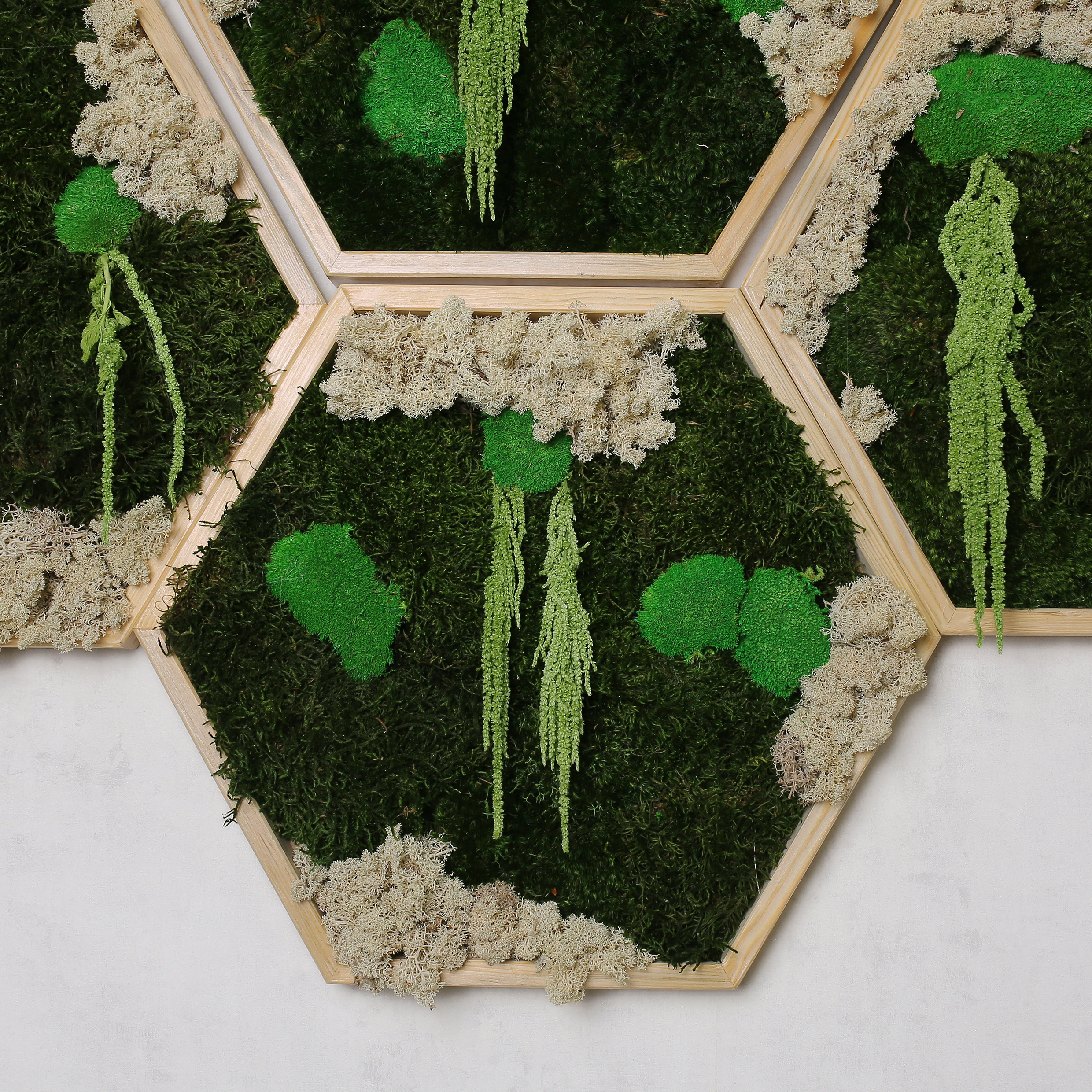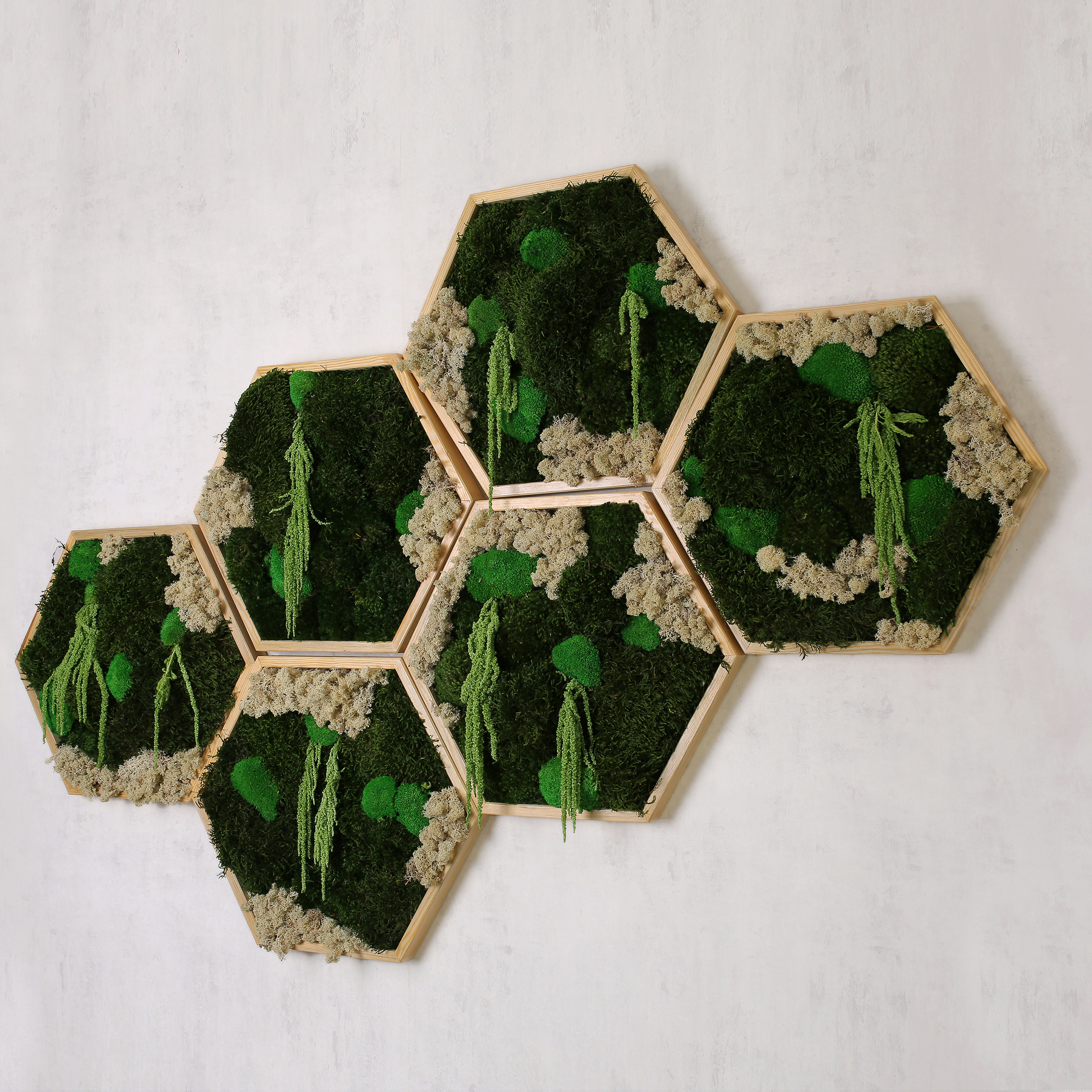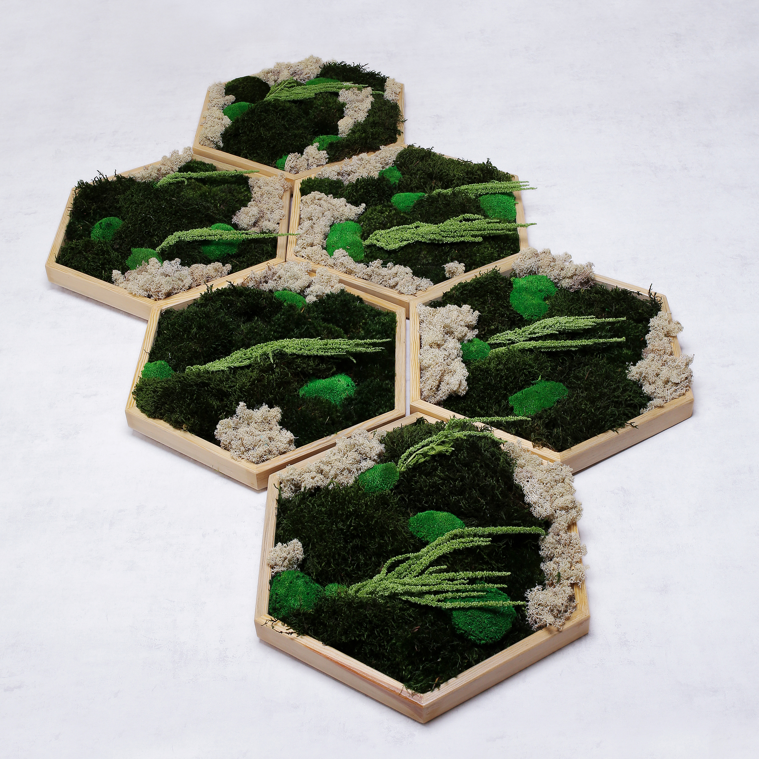 “Trend Greens’in benzersiz altıgen yosun tabloları, doğanın estetik ve fonksiyonel gücünü mekanlarınıza taşıyor. %100 doğal ve sürdürülebilir olan bu tablo tasarımları, uzun yıllar boyunca bakım gerektirmeden mekanlarınıza yeşil bir dokunuş ekler. Su, ışık ve ısı ihtiyacı olmayan bu stabilize yosunlar, doğrudan iç mekanlara yerleştirildiğinde doğanın canlı tonlarını ve farklı dokularını yansıtarak ortamınıza huzur veren bir atmosfer yaratır. Altıgen şekilleri, modern tasarımları ve benzersiz yosun türleriyle mekanlarınıza dekoratif bir zarafet katarken, aynı zamanda hava kalitesini iyileştirir ve gürültüyü absorbe eder. Farklı boyutlarda üretilebilen bu duvarlar, iç mekanlarınızda doğayla uyum içinde bir yaşam alanı oluşturmanın mükemmel bir yoludur.”