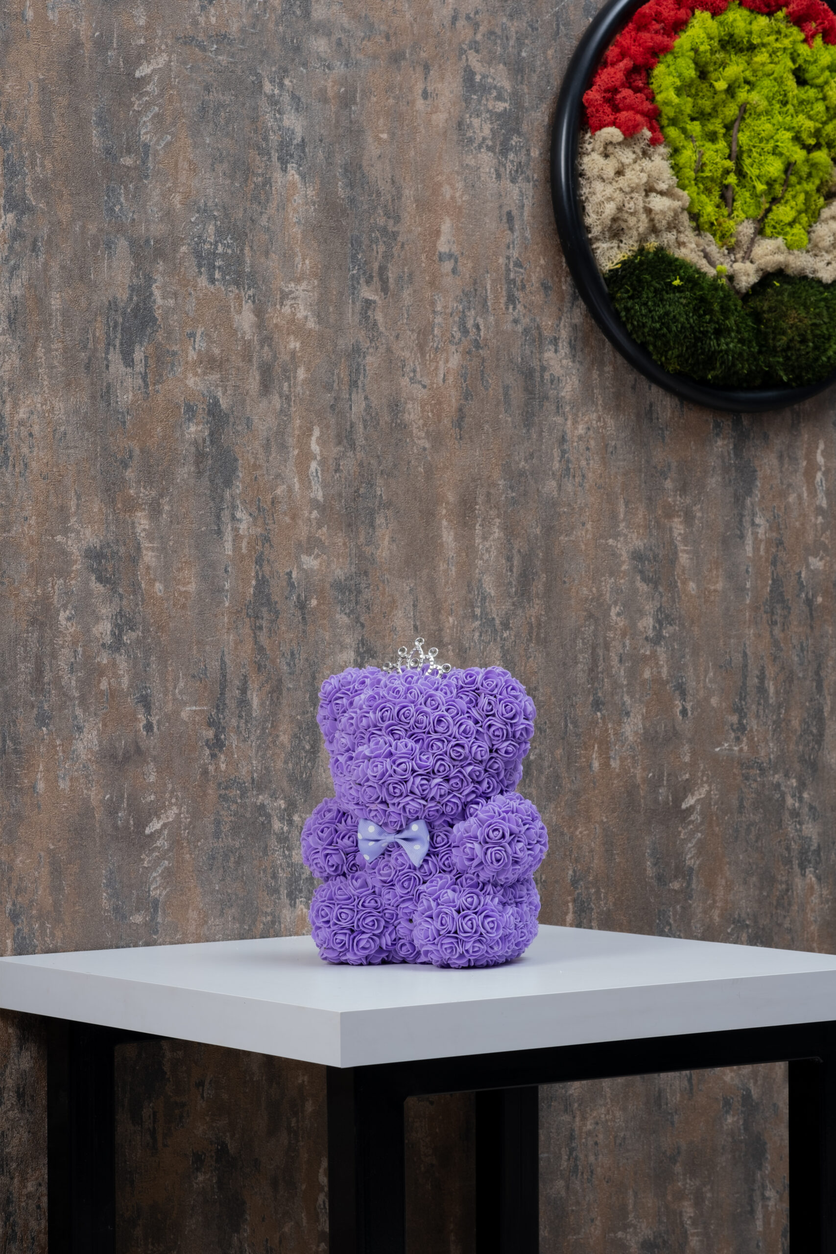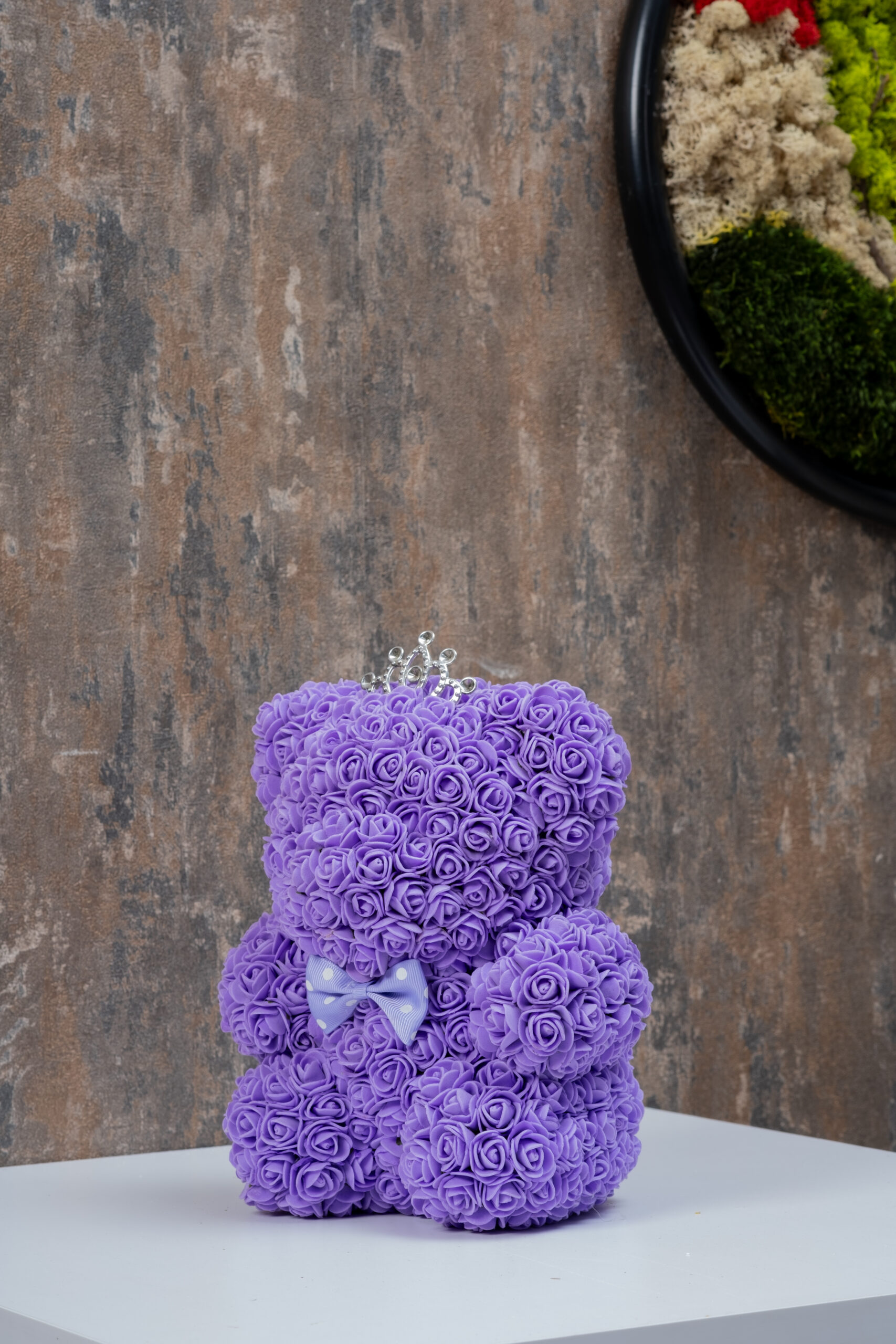 Tamamı özenle hazırlanmış gül formundaki yapay çiçeklerle kaplanan RoseBelle Crowned Teddy, zarif prenses tacı ve sevimli fiyonk detayıyla romantik bir hediye ve dekor objesine dönüşür. Krem tonlarındaki yumuşak dokusu, hem şık hem de masalsı bir görünüm sunar.